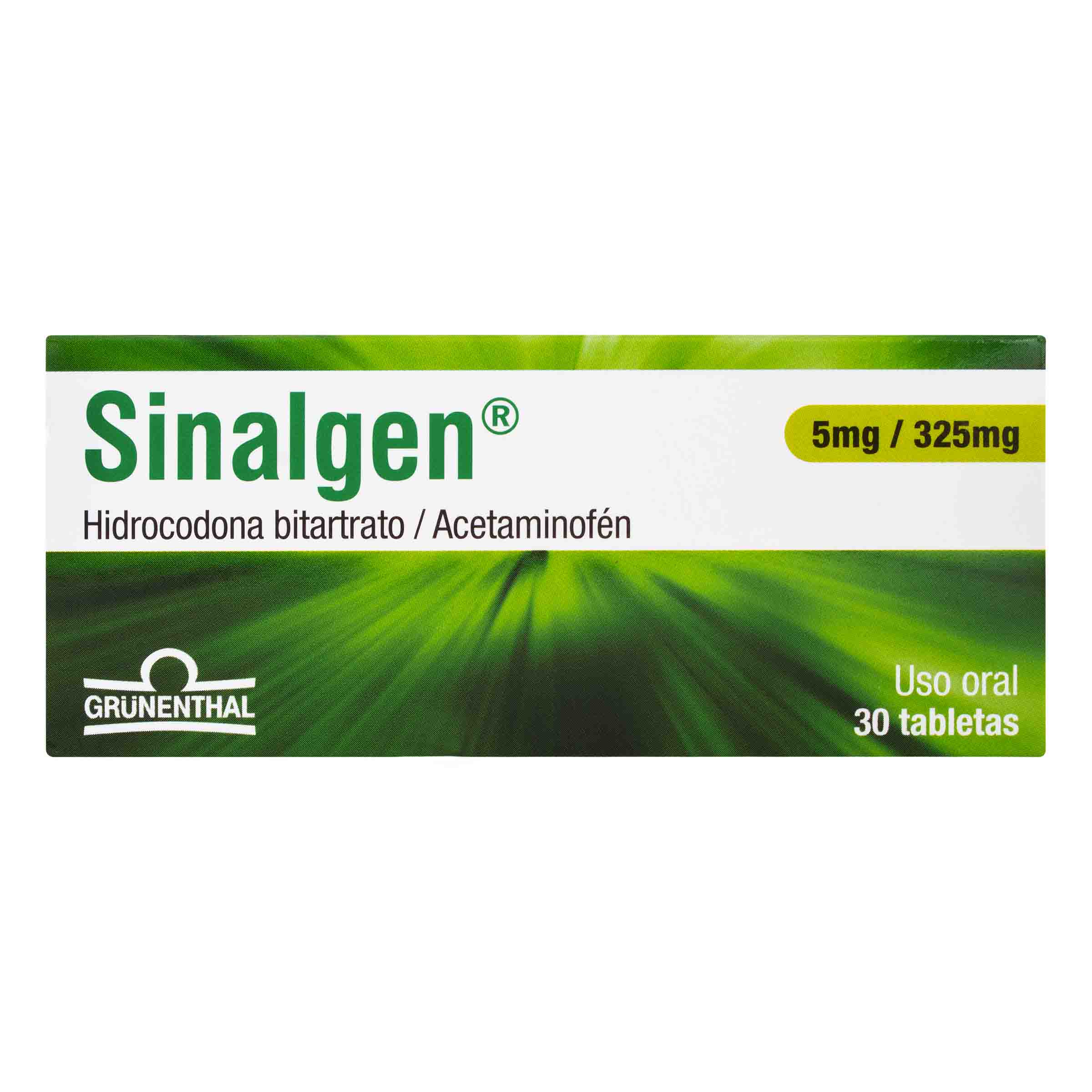 - Concentración: Hidrocodona bitartrato 5 mg / Acetaminofén 325 mg